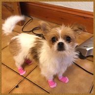 Tilly loving her new socks! Her little feet were so cold on our stone kitchen floor that she wouldn't even eat because she didn't like standing on it and was shivering! Now, she loves it 😁 thank you x