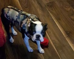 10 week old Doris isn't sure about her new coat...but her Mummy thinks she looks great!!